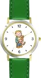 More Detail For Boy Hugging Cat Cat WATCHBUDDY DELUXE TWO TONE THEME WATCH Arabic Numbers Green Leather Strap Children s Size Small Boy s Size Girl s Size