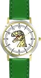 More Detail For Tyrannosaurus Rex T Rex Head Shot Dinosaur Animal WATCHBUDDY DELUXE TWO TONE THEME WATCH Arabic Numbers Green Leather Strap Children s Size Small Boy s Size Girl s Size