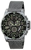 - Black dial with mint green hands and dot hour markers; luminous; protective cap on crown; mint green Arabic numerals on black unidirectional bezel