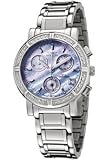 - Blue mother of pearl dial with silver-tone hands and hour markers; 16 diamonds mounted on bezel;