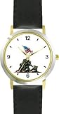 More Detail For US Flag Raising over Iwo Jima American Theme WATCHBUDDY DELUXE TWO TONE THEME WATCH Arabic Numbers Black Leather Strap Children s Size Small Boy s Size Girl s Size